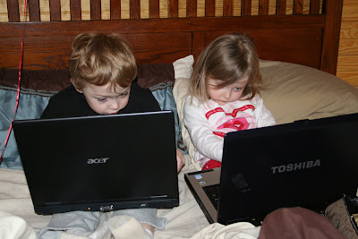 Balen came up for a visit a couple of weeks ago. I loved this photo as soon as I downloaded it. How cute, just is not something you would of seen when I was little. Oh my how everything has changed. Syd knows how to work a laptop perfect. She knows exactly how to click and where at. Don't they look like they are amazed?
